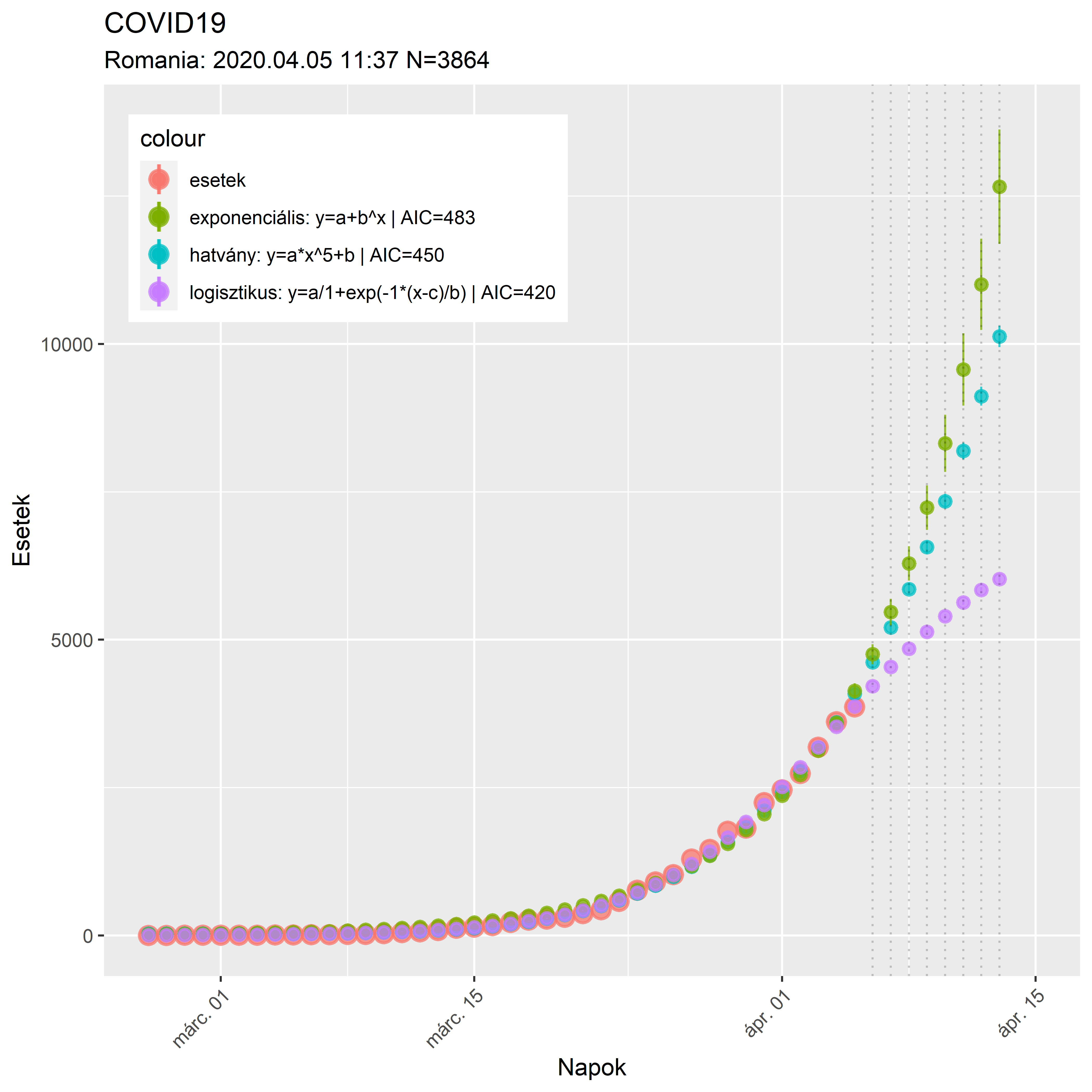A növekedés exponenciálissá vált az illeszkedések alapján, így arra számíthatunk. hogy a következő időszakban meredeken fog emelkedni a lejelentett fertőzöttek száma. Közben változott a protokoll is (…). Tehát ami az előrejelzéssel kapcsolatos csupán megfelelő körültekintéssel kezelendő.
