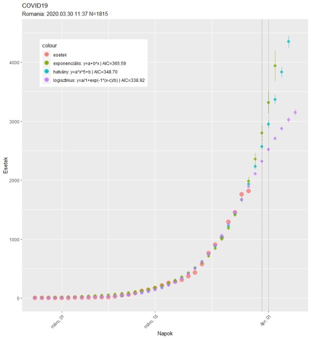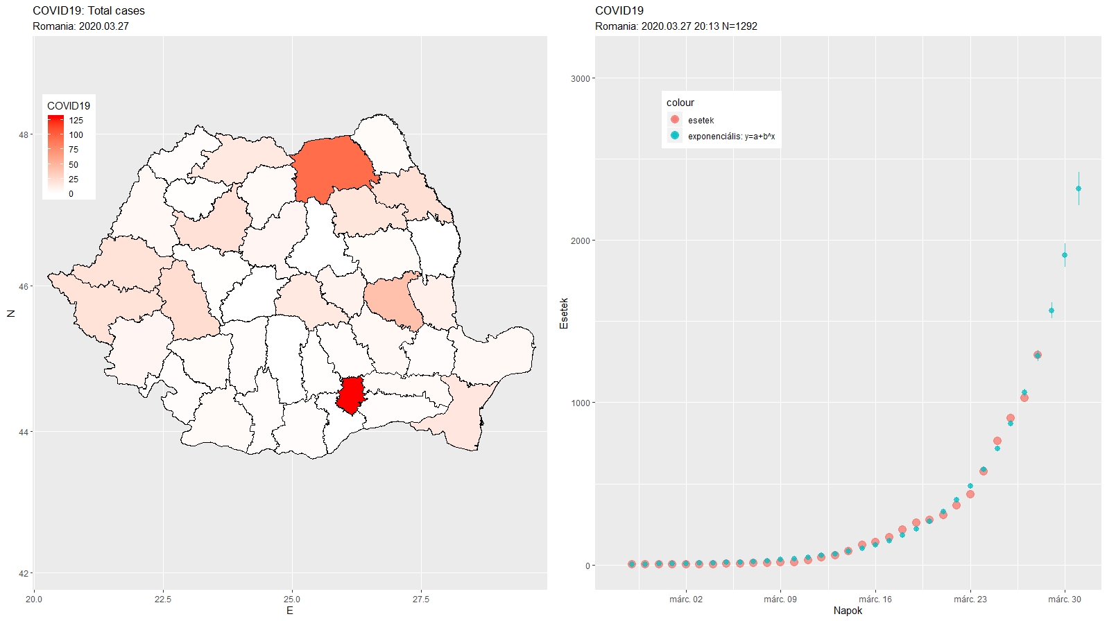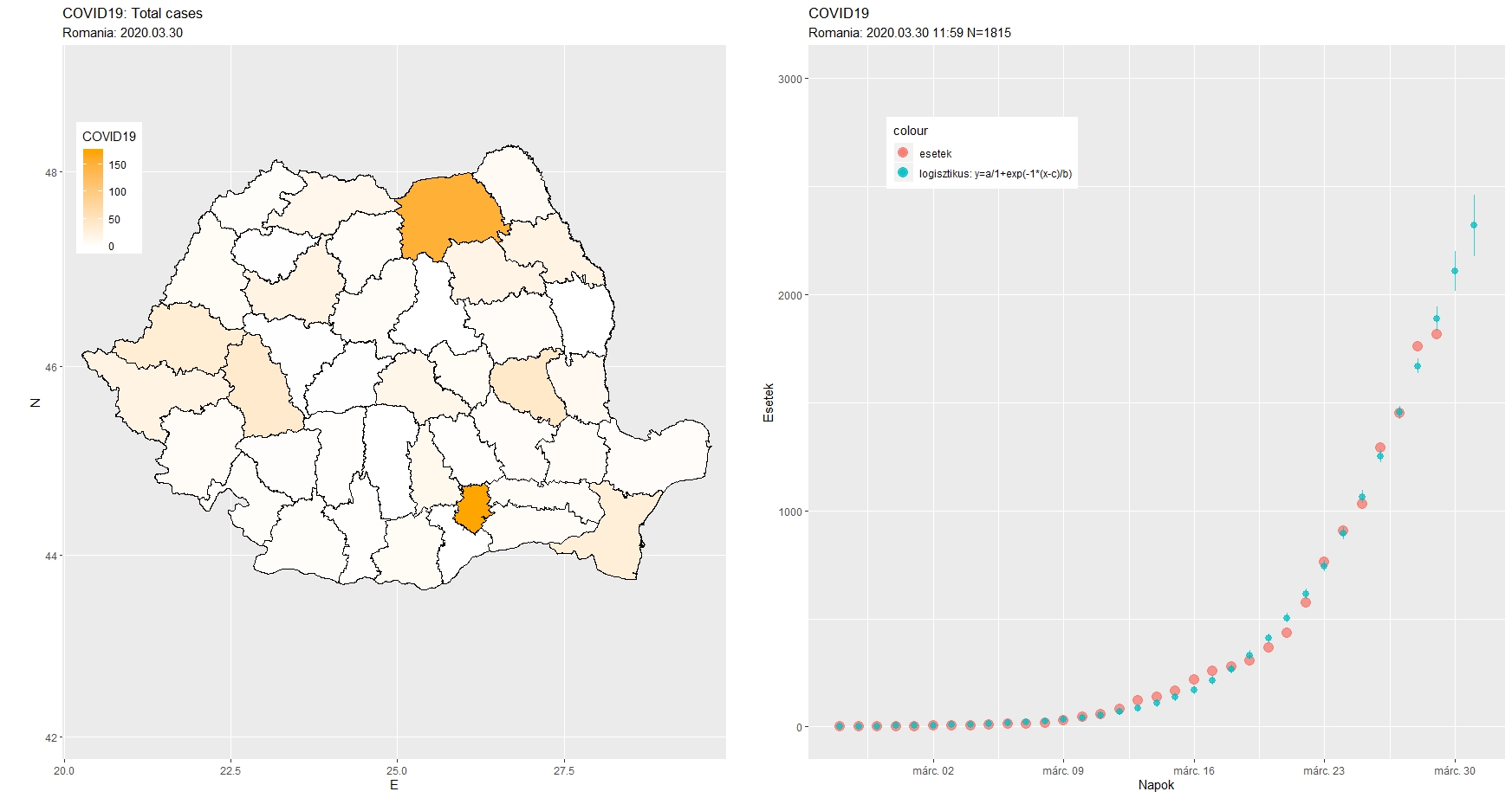 A romániai és a romániai napi adatok 2020.03.30-al bezárólag így mutattak. A részleges 2020.03.30 adatok alapján (https://covid19.geo-spatial.org/dashboard/main) pedig így: